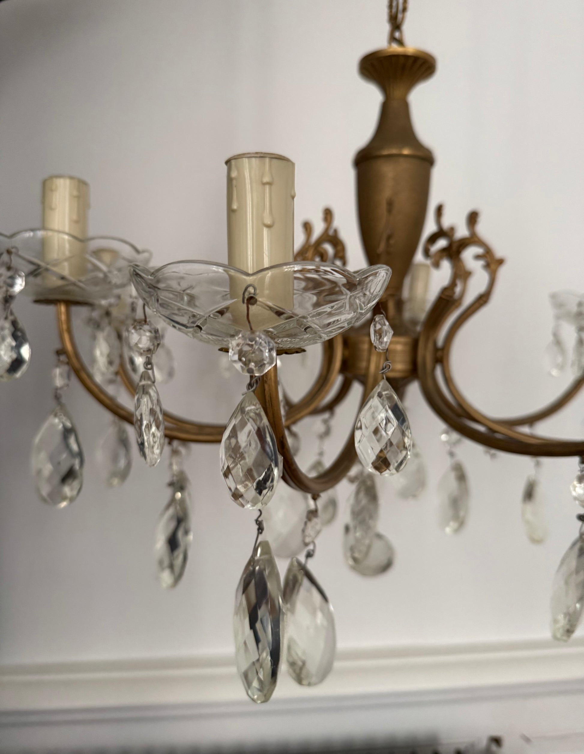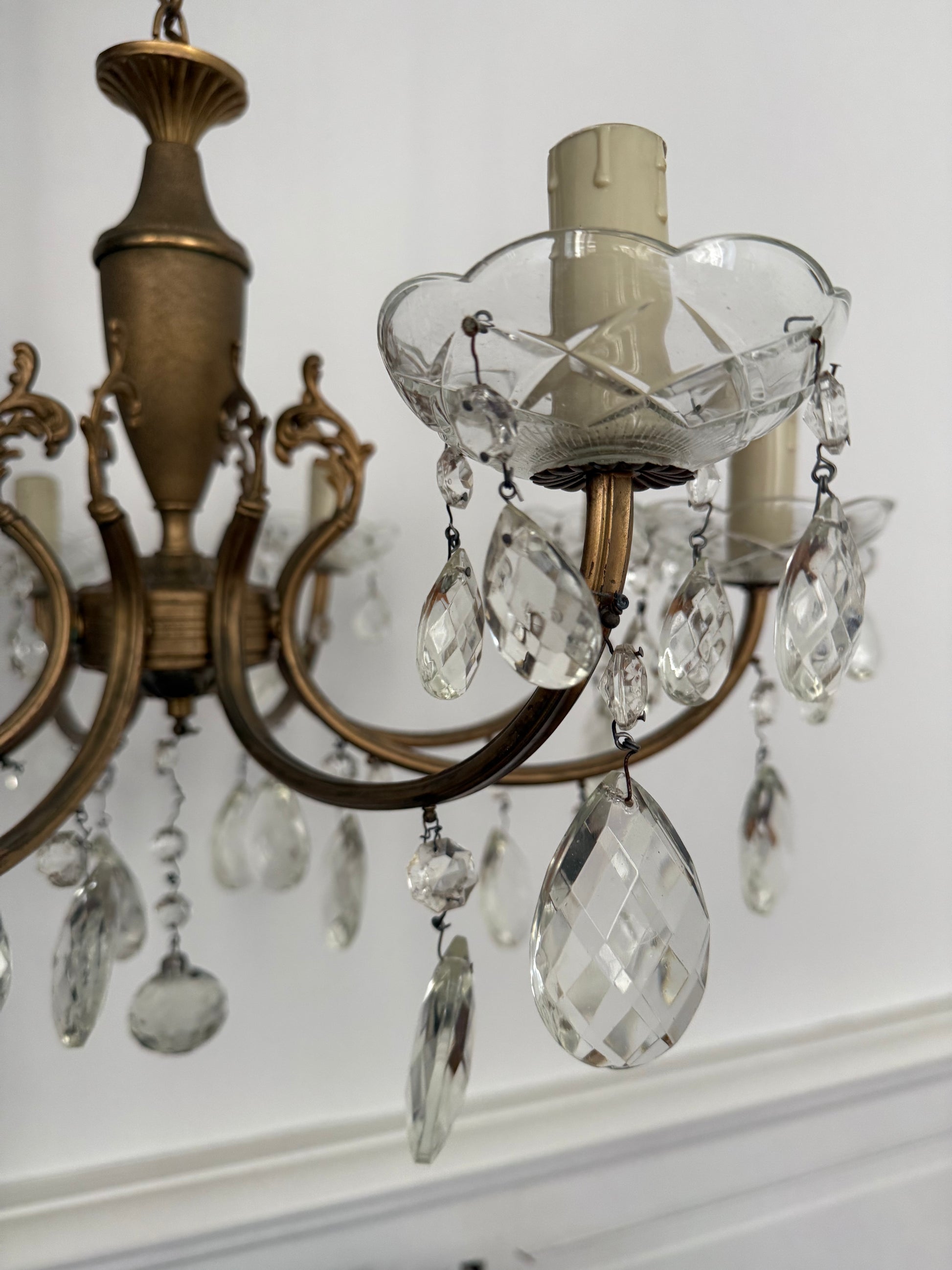 Son style classique et sa structure finement travaillée marient la richesse du laiton à la brillance du cristal, pour un rendu à la fois luxueux et intemporel.